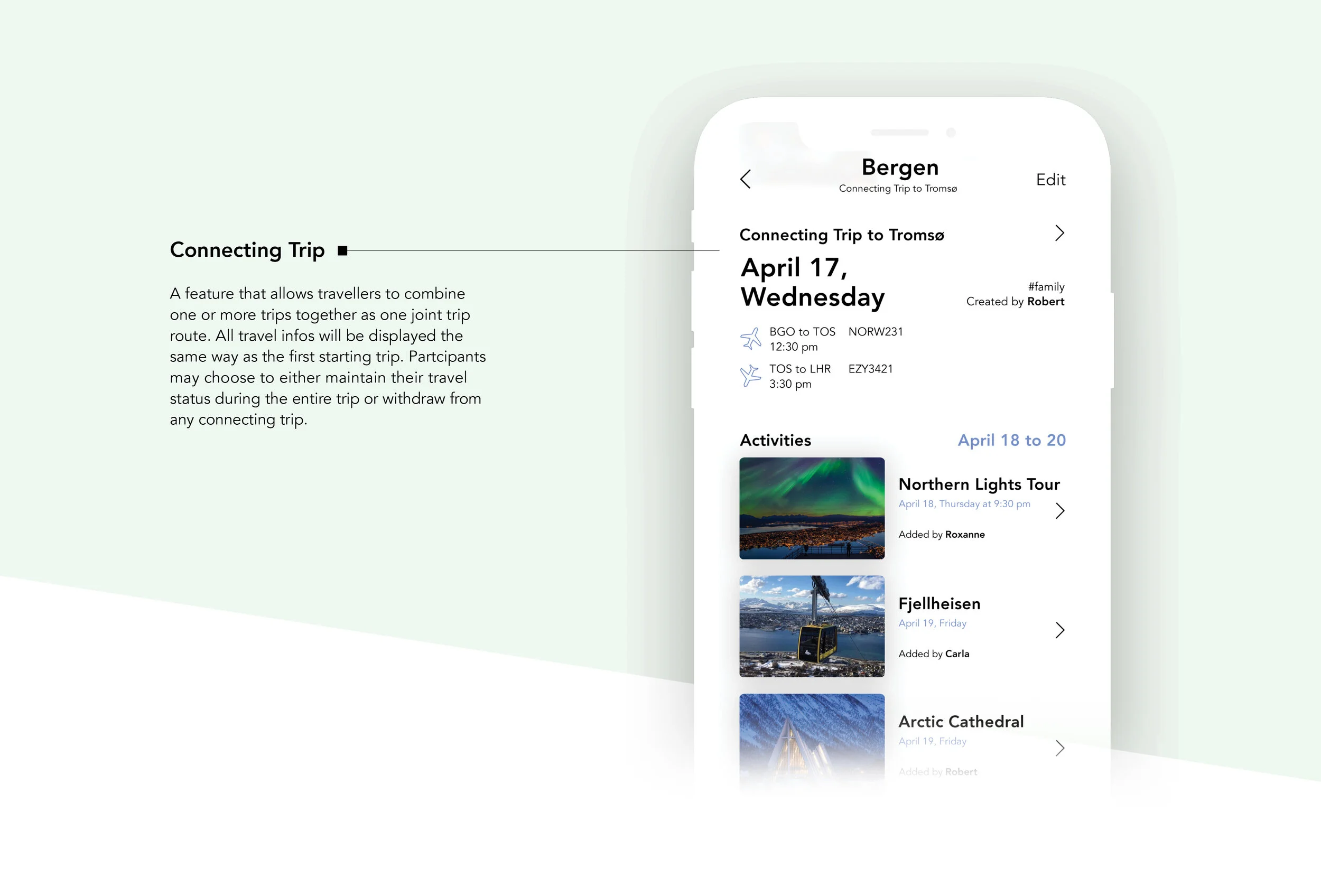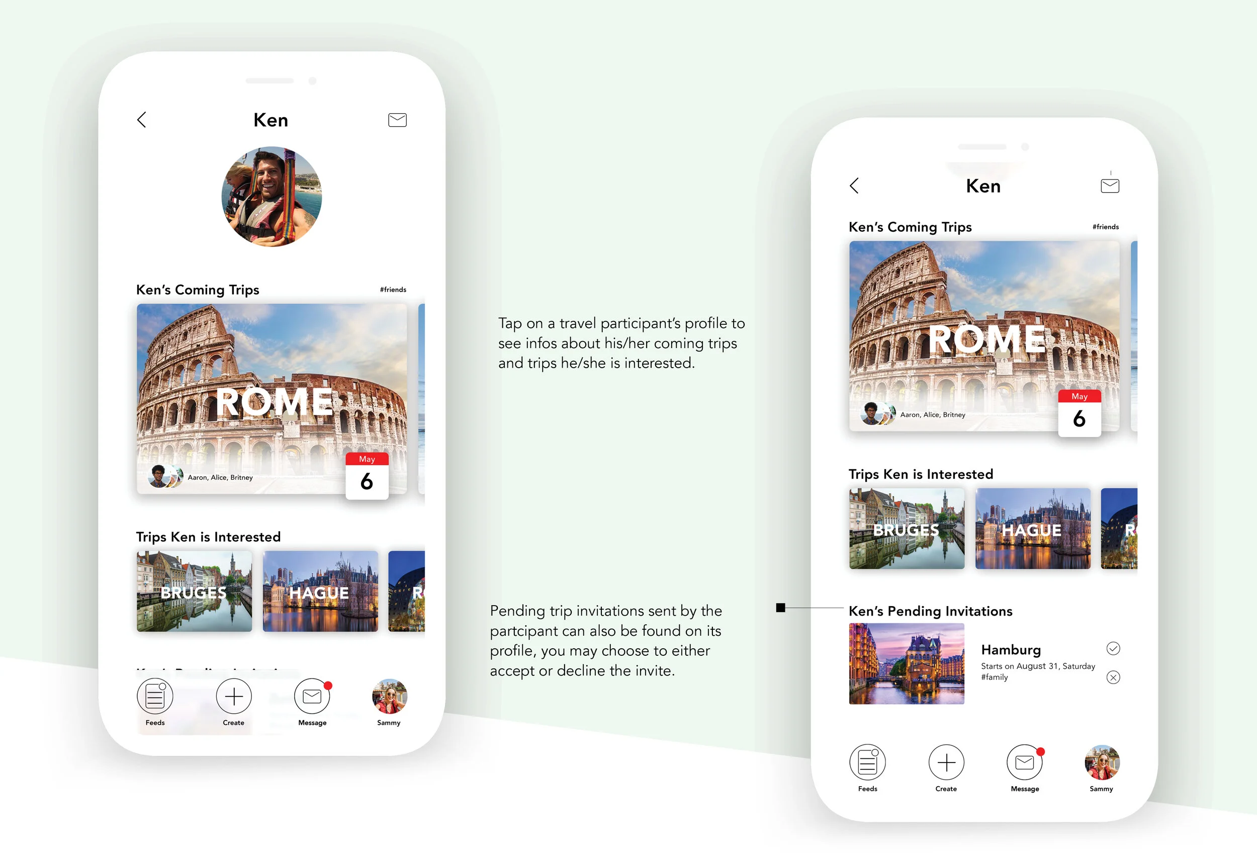The concept is developed as a collaborative service module for multiple user entities identified as group travellers to manage group trips. Management capabilities including travel schedules, transportations, travel agenda, activity recommendations, and accommodations through shared API, and expenditure splits among users.