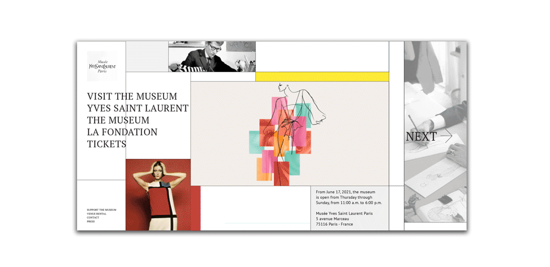 Short gif animation created for concept web template design as a part of the Musée YSL Paris editorial project