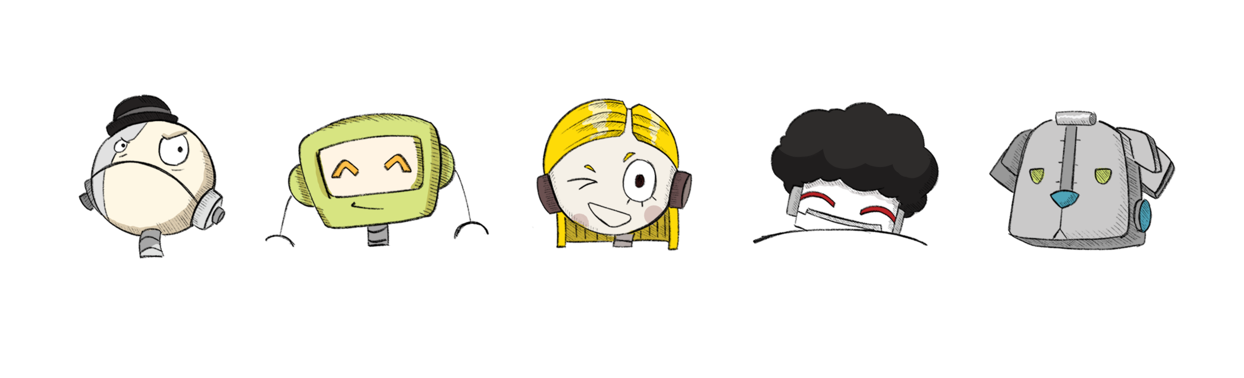 SPAREPARTS is a collaboration between Designers Jimmy Mansuo Zhang, Liam Qunxiang Lim, Niancao Yang and Screenwriters Ben Rawson-Jones, Demetri Johnstone, Eduardo Barreto, Ellen Mehrer, and Emma Strachan. The project consists of two parts: Character designs+Scene Illustrations and Screenwriting. Designers created the characters and illustrations based on brief provided by Screenwriters.